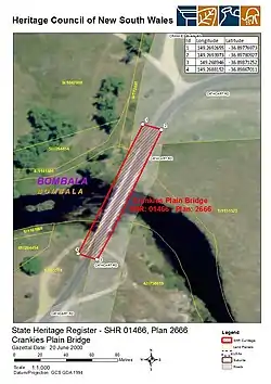 - 1 2 3 4 5 6 7 8 9 "Crankies Plain Bridge". New South Wales State Heritage Register. Department of Planning & Environment. H01466. Retrieved 2 June 2018.
