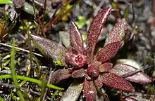 The plant is commonly found on granite slopes, sand dunes and in winter wet areas in the South West, Great Southern, Peel and Wheatbelt regions.[1]