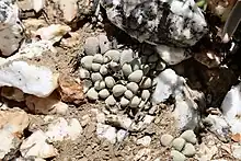 Crassula tecta is a species of succulent plant in the genus Crassula native to South Africa.[1] Easily confused with Crassula namaquensis, this species has a compact growth habit forming clusters of round, blue-white leaves.[2] Kept in cultivation since the 18th century, Crassula tecta is known for the beautiful patterning on its leaves and white flowers.[3][4]
