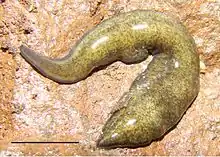 The several eyes of C. viridimaculata are distributed marginally in the first millimeters of the body and posteriorly become dorsal, occupying around 30% of the body width just before the region of the pharynx.[1]
