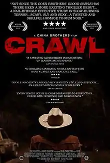 Crawl[8] has received positive reviews from critics, scoring a 63% fresh rating on Rotten Tomatoes based on 8 reviews, with an average score of 4.9/10.[9] Sean Decker of Dread Central said the film ″rivals No Country For Old Men in gritty style and suspense″ and was an ″assured Hitchcockian slow-burn.″ [10] Journalist Alan Jones awarded the film four stars saying ″not since the Coen Brothers' Blood Simple has there been a more exciting thriller debut...a nail-bitingly effective study in slow-burning terror...scary, sly and sexy...a twisted and skillful homage to film noir.″