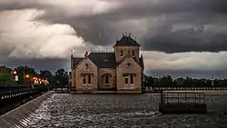 The Gothic architecture-style gatehouse building was constructed in 1879. It was designed by water company chief engineer Charles Hermany.[3] The Crescent Hill Filtration Plant opened in 1909 "culminating landmark experiments" in sand and gravel filtration. The site includes historical markers.[4]
