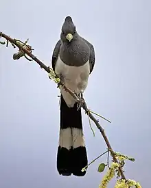 The white-bellied go-away-bird (Crinifer leucogaster) is a bird of eastern Africa in the family Musophagidae, commonly known as turacos.