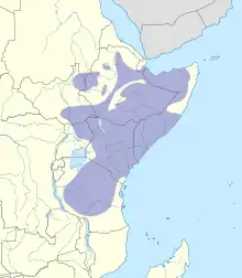 Go-away birds are limited to their local ranges due to water availability, but the species occurs across a vast area in and around the Horn of Africa. It is found in Burundi, Djibouti, Eritrea, Ethiopia, northern and eastern Kenya, Rwanda, Somalia, South Sudan, northeastern Uganda, and southwards into the eastern plateau of Tanzania.
