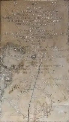 Cristóbal Bencomo and his brothers contributed financially to the construction of the neoclassical facade of the Cathedral of San Cristóbal de La Laguna and Cristóbal's personal library donated to the bishopric, the same that he had helped create. In addition, Bencomo donated to the cathedral two relics: a piece of the mantle of St. Ferdinand III of Castile and a bone of St. James the Less.[10]