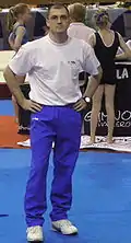 Claudiu Cristian Moldovan (born 20 September 1976 in Târgu Mureș) is a retired Romanian aerobic gymnast.[1] He had a successful career winning seven world championships medals (three gold, two silver and two bronze) and two European championships medals (one gold and one bronze).[2] After retiring from aerobic gymnastics, he has been a coach for the junior national women's artistic gymnastics team.[3] Among many gymnasts, he coached young Diana Chelaru, Larisa Iordache and Diana Bulimar.[4]
