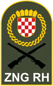 On 5 May the number of ZNG troops and their composition was determined, followed by operational guidelines issued by Defence and Interior Ministers Martin Špegelj and Josip Boljkovac for the transfer of police personnel to the ZNG on 10 May. By 15 May several special police units (SPUs) transferred to the ZNG, forming four brigades.[9] By July the ZNG had approximately 8,000 troops and, unlike other Croatian forces, were fully equipped with small arms.[7] The reserve police force, numbering about 39,000 in April, was also transferred to reserve ZNG brigades and independent battalions.[9] On 18 May the Zrinski Battalion was established as a special forces unit of the ZNG, its core consisting of 27 volunteers drawn from the Kumrovec SPU. Initially, it also relied on former French Foreign Legion troops.[10] By July, the reserve force of 40,000 ZNG troops was assigned to 19 brigades and 14 independent battalions; however, they did not possess sufficient heavy or small arms for all their personnel. The Croatian police had approximately 15,000 small arms, with less than 30,000 additional weapons obtained from abroad by August.[7]