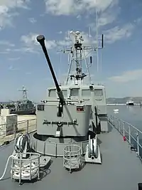 Ship's bow with the 40 mm Bofors gun and the ship's bridge visible
