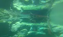 ![]() A large saltwater crocodile seen through under-water viewing glass at Crocosaurus Cove | |