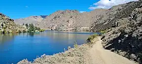Long-associated with gold mining, orchards and the production of stone fruit, the gorge (including part of old Cromwell) was flooded in the early 1990s to form Lake Dunstan behind the hydroelectric Clyde Dam.[2] The former Otago Central Railway which traced the river through the gorge from Clyde was removed, while State Highway 8 was realigned above the newly-formed lake.[3]