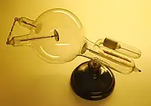 A Crookes tube (also Crookes–Hittorf tube)[1] is an early experimental electrical discharge tube, with partial vacuum, invented by English physicist William Crookes[2] and others around 1869-1875,[3] in which cathode rays, streams of electrons, were discovered.[4]