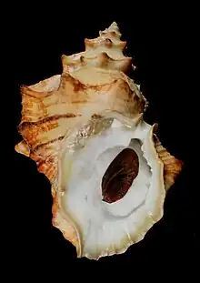 Apertural view of Crossata ventricosa (Broderip, 1833) with operculum