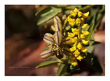 The New Holland rattlepod is a member of the Eudicots, a part of the larger Angiosperm division of flowering plants. It has characteristically bright yellow flowers and larger brown pods. Since they are in the family Fabaceae, they are distantly related to legumes such as peas, lima beans, and lentils. Although some members of this genus indigenous to other countries have edible flowers which may be eaten raw and seeds that are edible and nutritious if treated correctly, the New Holland Rattlepods are known to be toxic and should not be used as a source of food for humans.