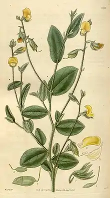 Crotalaria sagittalis, known as arrowhead rattlebox or just rattlebox, is an annual wildflower native to the United States, Midwestern and Eastern states. [1] [2]