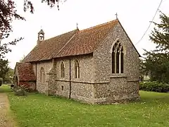 The Church of England parish church of the Nativity of the Blesséd Virgin Mary is a small flint building.[2][3] The church existed by the middle of the 12th century and the blocked-up Norman north doorway survives from this time.[2][3] In the 13th century the chancel arch was rebuilt and the present south doorway was added. In the 14th century the chancel was rebuilt, made taller than the nave and given Decorated Gothic windows. The internal and external fabric of the building were repaired and renewed several times in the 17th and 18th centuries and notably in 1835–39 by one Richard Clark of Wallingford, whose work included renewal of the box pews and three-decker pulpit.[2]