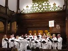 More tangible records date from 1711, when the Crown Court Church was established near Covent Garden. The church was extensively rebuilt in 1909, but remained on the same site. The exterior of the church is scarcely visible as it shares walls with neighbouring buildings, whilst the interior retains a 17th-century feel (despite the early 20th-century rebuilding work.) The church is named after a small courtyard adjacent to its location, but is also known as the "Kirk of the Crown of Scotland". The church building has been listed Grade II on the National Heritage List for England since December 1987.[1]