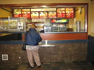Some restaurants are in dangerous areas of the most dangerous cities,[5] serving from behind bulletproof glass, especially at night. Some locations have added Middle Eastern dishes such as kebabs with rice to their menus,[6] but Kennedy's and Crown's specialties are the deep-fried chicken (described as "not too dry or too soggy").[4] Chicken and food are quite often ordered a la carte. Not all dishes are available for takeout and delivery. Menus are usually posted on the walls with photographs.