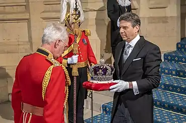 In 2007, Garrard & Co. were replaced, the reason given that it was time for a change.[6] The company had been acquired by a private equity firm in 2006.[7] Harry Collins of the family business G. Collins & Sons, who was also Queen Elizabeth II's personal jeweller, was appointed the new Crown Jeweller.[8] In 2012, Collins stepped down from the role and Martin Swift of Mappin & Webb became the Crown Jeweller.[9] In 2017 he was replaced by Mark Appleby, the head of Mappin & Webb's jewellery workshop.[10]