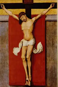 Crucifixion Diptych — also known as Philadelphia Diptych, Calvary Diptych, Christ on the Cross with the Virgin and St. John, or The Crucifixion with the Virgin and Saint John the Evangelist Mourning — is a diptych by the Early Netherlandish artist Rogier van der Weyden, completed c. 1460,[1] today in the Philadelphia Museum of Art. The panels are noted for their technical skill, visceral impact and for possessing a physicality and directness unusual for Netherlandish art of the time. The Philadelphia Museum of Art describes work as the "greatest Old Master painting in the Museum."[2]