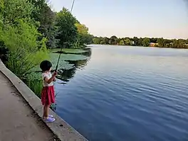 In 2007, the City of Newton used Community Preservation Act funds to acquire by eminent domain a one-acre parcel at 20 Rogers Street, a property next to the swimming beach and bath house.[15][16] The following year, the city purchased an easement on an adjacent property, 230 Lake Avenue, and built a lakeside path connecting the swimming beach park to the nearby park at Levingston Cove.[15][17]