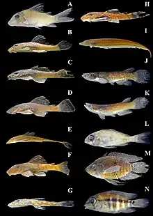 - ↑ Covain, Raphael & Fisch-Muller, Sonia & Montoya-Burgos, Juan & Mol, Jan & Le Bail, Pierre-Yves & Dray, Stéphane. (2012). The Harttiini (Siluriformes, Loricariidae) from the Guianas: a multi-table approach to assess their diversity, evolution, and distribution. Cybium: international journal of ichthyology. 36. 115-161.