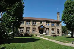 Cuba High School Annex, also known as the Crawford County Historical Society Museum, is a historic school building located at Cuba, Crawford County, Missouri. It was built in 1934 with funds provided by either the Civil Works Administration or the Works Progress Administration. It is a two-story, rectangular building built on a raised basement. It measures 60 feet by 30 feet and has a hipped roof. It is finished with random ashlar native stone laid in a “giraffe” pattern with grapevine joints.[2]:6,8