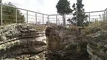 Cuexcomate (Spanish pronunciation: [kweɣskoˈmate]) is an inactive geyser in Puebla city, Puebla state, Mexico. The sinter cone that the geyser built up around its vent is 13 metres (43 ft) tall and has a diameter of 23 metres (75 ft). A central crater within the cone is up to 8 metres (26 ft) wide and 17 metres (56 ft) deep (extending 4 metres (13 ft) below ground level).[1]