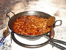 The cuisine of the Community of Madrid is an amalgamation of the cuisines of various regions of Spain developed, in part, by mass migration to the capital city starting during the reign of King Felipe II. As the city grew, it incorporated the culinary traditions of the municipalities it absorbed into the area now known as the Community of Madrid.