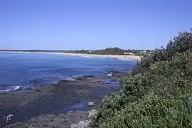 ![]() Northern end of Warrain Beach, the main surfing beach | |||||||||||||||