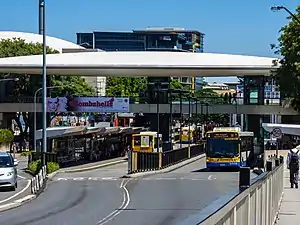The station services buses to the southern suburbs and South East Busway as well as providing an alternative terminus to the Brisbane central business district for many bus services from northern suburbs including those operating via the Northern Busway. Many CityXpress and most BUZ routes pass through the station, providing convenient transfer to and from major servicing areas outside the city. It is served by 70 routes operated by Clarks Logan City Bus Service and Transport for Brisbane as part of the Translink network.[7]