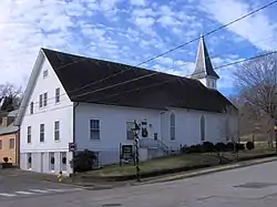 The church building, which was the congregation's third home, is a Carpenter Gothic design. The building was completed and dedicated in 1882.[2] It was added to the National Register of Historic Places in 1982.[1]