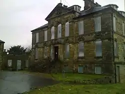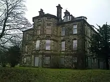 The last Lord Fleming, Charles, 7th Earl of Wigtown, died childless in 1747, and the estates passed to the Elphinstone family. Naval officer and politician Charles Elphinstone-Fleming was laird from 1799-1840. There is a report of a 5000 strong mob marching on the house in 1797 to oppose the Militia Act.[4] Elphinstone-Fleming retired as an Admiral, and was MP for Stirlingshire. His son Lieutenant-Colonel John Elphinstone-Fleming became Lord Elphinstone in 1860, but died unmarried in 1861. The Cumbernauld property was then inherited by his nephew from Canterbury, Cornwallis Maude-Fleming, son of Lord Hawarden. Cornwallis was killed in action fighting the Boers as a Captain of the Grenadier Guards at Majuba Hill, Transvaal, in 1881. Before that, around 1870, the house was gutted and internally reconstructed.[2] In 1875, Maude-Fleming sold the Cumbernauld 'interesting historical estate' to John William Burns, son of James Burns of Bloomfield, for £160,000.[5] The house was gutted by fire on the evening of 16 March 1877.[6] The Burns family sold the estate to the government for the development of Cumbernauld new town in 1955.
