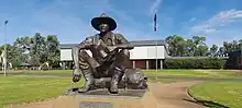 In honour of the enduring legacy of "The song," the Cunnamulla Fella Statue was unveiled in 2005 by country music personalities Anne Kirkpatrick (Dusty's daughter), Jayne Kelly, and Tracy and Russell Coster.[5][12][13] That year the Cunnamulla Fella Festival was established in its honour.[14] The statue was commissioned by the Paroo Shire Council, with the intent of celebrating the unique character of the Cunnamulla region and paying homage to Slim Dusty's contribution to Australian country music.[5]