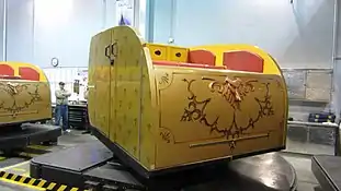• After the music room and before entering the library, the sleigh slowly traveled down the hallway, viewing portraits of Maximilian II (Ludwig's father), Ludwig, and Marie (Ludwig's mother) as Maximilian and Marie's portrait lights dimmed and Ludwig's became brighter. After the update, the sleigh now travels down this hallway backwards, looking at the torches that were previously behind riders in order to accommodate the air blast effect. The sleigh still does come within view of the original three portraits, now promptly before entering the library. Ludwig's portrait remains lit, and his parents' are dim and disfigured.