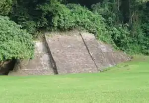 This settlement would seem to have been a fortress, due to some architectonic characteristics; the existence of retaining walls that run throughout the esplanade north to south has been confirmed; its height makes it relatively inaccessible from the west, as well as by the cliff that borders it to the east. It is believed it was required due to the large social mobility that ensued after the fall of Tajín.[1]