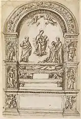 The original tomb of Lorenzo Cybo which was later dismantled (17th century drawing)