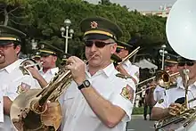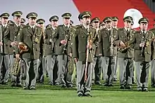 Besides classical music for the wind orchestra and marching music for the brass band,[7] the army band performs melodies from popular films and songs from musical groups such as Queen and the Beatles. During concert activities, the Czech Army Band uses the works of many Moravian authors (notably Miloš Machek, Mojmír Zedník, František Maňas, and Jiří Volf).[8]