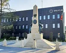 Freedom Monument (Pomnik Wolności) with the police station in the background