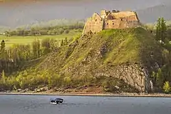 The Czorsztyn Castle stands at the top of the hill nearby Dunajec. According to Jan Długosz, in 1246 the owner of the castle was Piotr Wydżga.[1] However that theory was never after confirmed by other historians, so the beginnings of castle functioning are dated on 14th century. Large development of the castle took place during the reign of Casimir III the Great. In years 1629–1643, when Jan Baranowski was a starosta of Czorsztyn, the castle was fundamentally rebuilt. In 1651 the Castle was captured by the Goral rebels of the Kostka Napierski Uprising. In 1790 the roof of the castle burned following a lightning strike. Afterwards, the castle was abandoned.