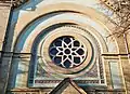 The building of the synagogue consists of a central square in the middle, a foyer and a shrine. The central square is covered by a circular dome. Out of a total of 800 seats, 406 are on the ground floor and the other on the first floor. The interior walls were decorated with geometric motifs in yellow, blue, red and brown.