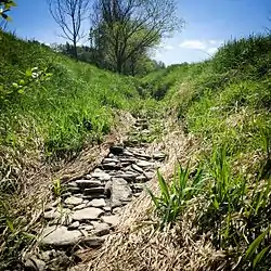 ![]() South of the district Kolba of Oppurg: above ground the Dürrbach is dry, it flows subterranean | |