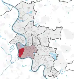 Hamm is an urban quarter of Düsseldorf, part of Borough 3. Hamm is located on the river Rhine, adjacent to the boroughs of Bilk, Volmerswerth, and the central harbour of Düsseldorf. It has an area of 4.10 km2 (1.58 sq mi),[2] and 4,518 inhabitants (2020).[1]