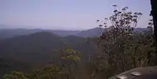 The D'Aguilar Range is a mountain range near Brisbane, Queensland, Australia. The town of Dayboro is situated on the lower foothills midway along the range and the Sunshine Coast Hinterland town of Mooloolah lies at the northernmost point of the range.[1] Many residential areas line its eastern slopes including the town of Samford and the suburb of Ferny Hills. In the west, numerous ridges and gullies are heavily forested and designated as state forest or national park.[2]