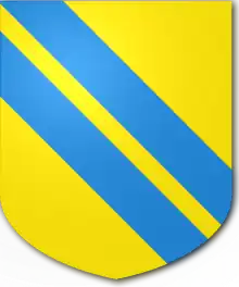 | Blazon | Gules three bucks' heads cabossed Argent. |