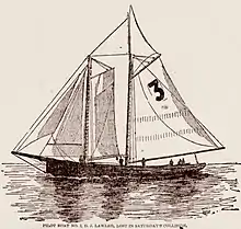 The D. J. Lawlor, was built at North Weymouth, Massachusetts by Porter Keene.[2] The D. J. Lawlor (No 3), was launched at Quincy Point in Quincy, Massachusetts on December 22, 1881 for Captain Abel F. Hayden.[3] She was the largest of her build and rig in the United States and noted for her seaworthiness and heavy weather performance.[4] She was designed by Dennison J. Lawlor, for whom she was named. She took the place of the pilot-boat Gracie, that was sold to the Wilmington, Delaware pilots.[5]