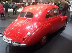 A Cd factor of 0.42 was claimed for the new design and the look of the car was significantly smoother than the 1930s DKW designs.[1] For the first time, a three cylinder engine was specified, implying useful performance advantages. In other respects, DKW traditions were respected. The engine was still a two stroke unit, and the driven wheels were still the front wheels. The chassis was still of box frame construction.