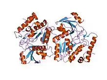 - ↑ Moe E, Hall DR, Leiros I, Monsen VT, Timmins J, McSweeney S (2012). "Structure-function studies of an unusual 3-methyladenine DNA glycosylase II (AlkA) from Deinococcus radiodurans". Acta Crystallogr D. 68 (6): 703–12. doi:10.1107/S090744491200947X. PMID 22683793.