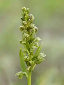 Dactylorhiza viridis, the frog orchid, is a species of flowering plant in the orchid family Orchidaceae.[1][2] It has also been treated as the only species Coeloglossum viride of the monotypic genus Coeloglossum.[3][4]