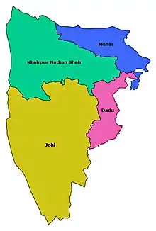 - ↑ Dadu, Johi, Kakar and Mehar talukas of Dadu district