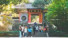 In the surrounding area is a grotto which is considered amongst China's earliest,[1] and where a number of Buddha statues are to be found, including a reclining Buddha, a waterfall and a petrified forest.